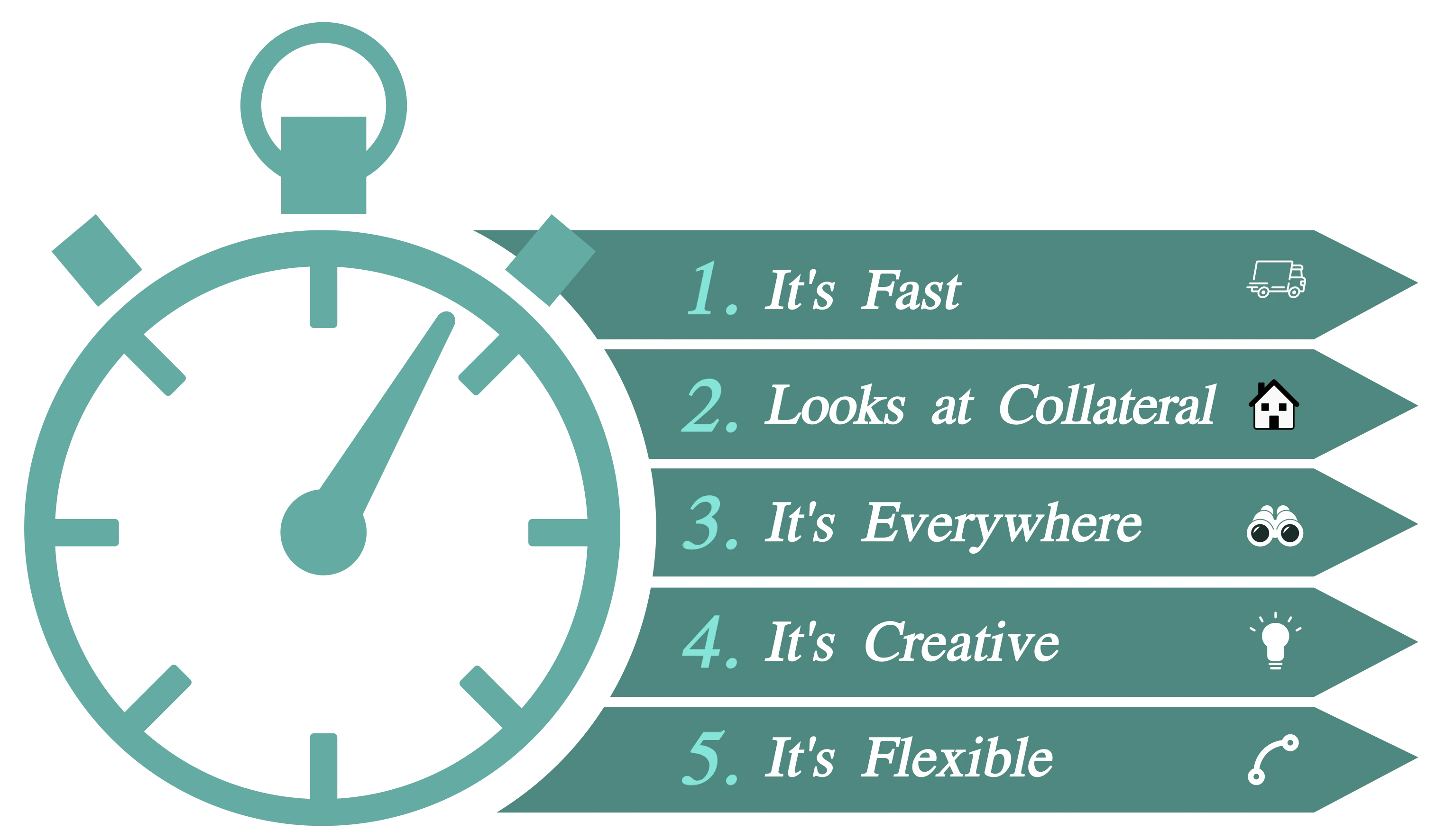 With Private money, you can get funding on great deals that banks would normally shun. Promising investment properties that need repairs, make them unsuitable for most banks, but perfect for most Private money lenders. - It’s Flexible: